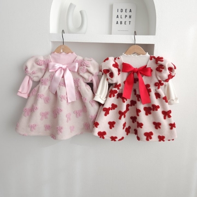 - [빠른수입] 핑크리본 니트+원피스 셋