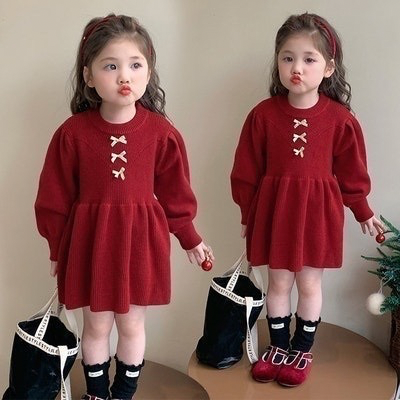 - [빠른수입] 미니리본레드니트원피스