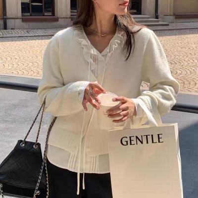 - on.[CD582]프릴블라우스레이어드루즈핏가디건