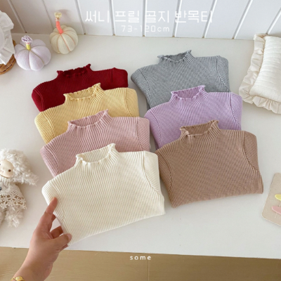 넥라인 프릴이 포인트인 골지 반목티예요
